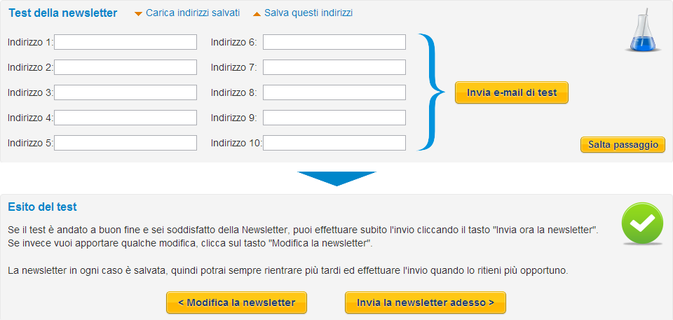 Test della newsletter e invio